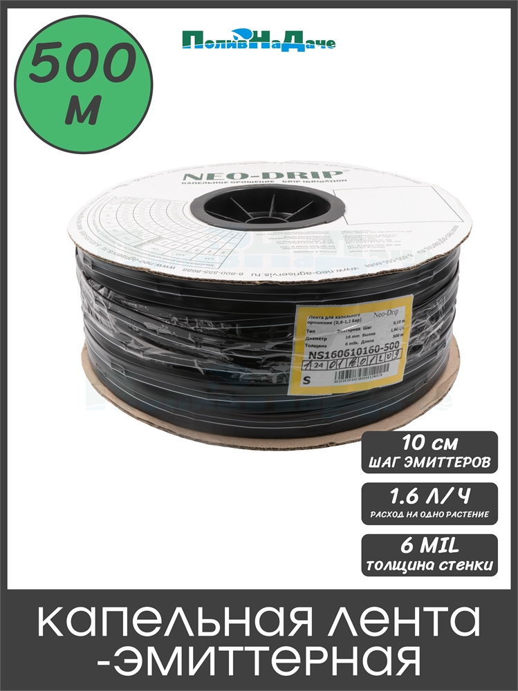 Капельная лента эмиттерная Neo-Drip P16мм 6mil, шаг 10, 1,6л/ч (бухта 500м)