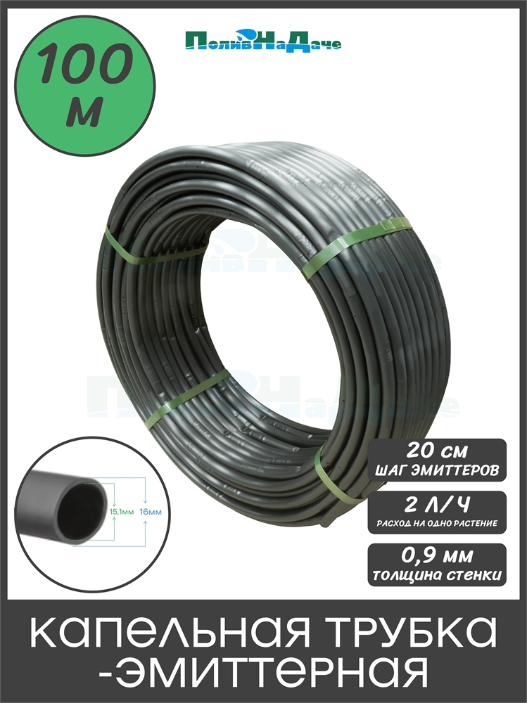 Капельная трубка 16мм, с компенсацией, шагом 20см и выливом 2 л/час.