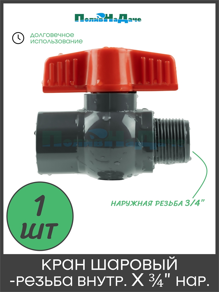 Кран, компактный шаровый, PVC, резьба внут х нар 3/4" широко используется в системах полива. (FMB0134)