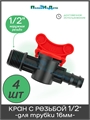 Кран 1/2" наружная резьба для капельной ленты . Упаковка 4 шт