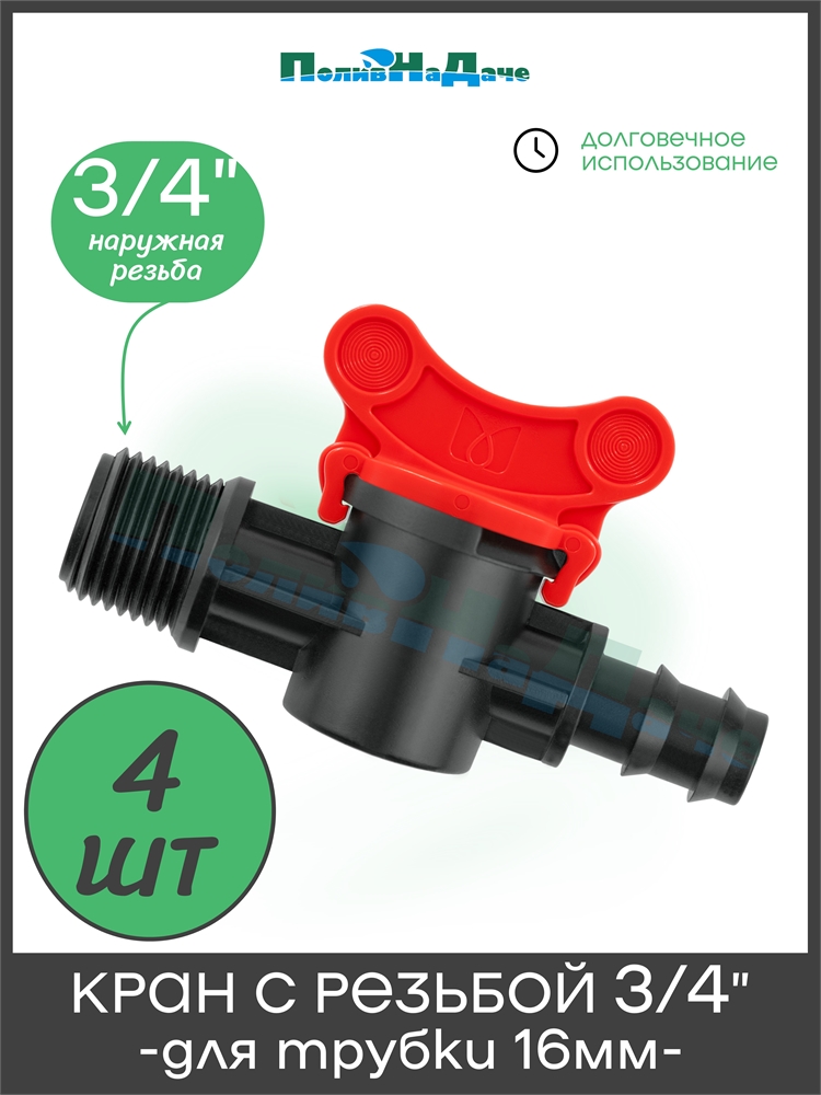 Кран стартовый для капельной трубки 16мм х 3/4" наружная . Упаковка 4 шт