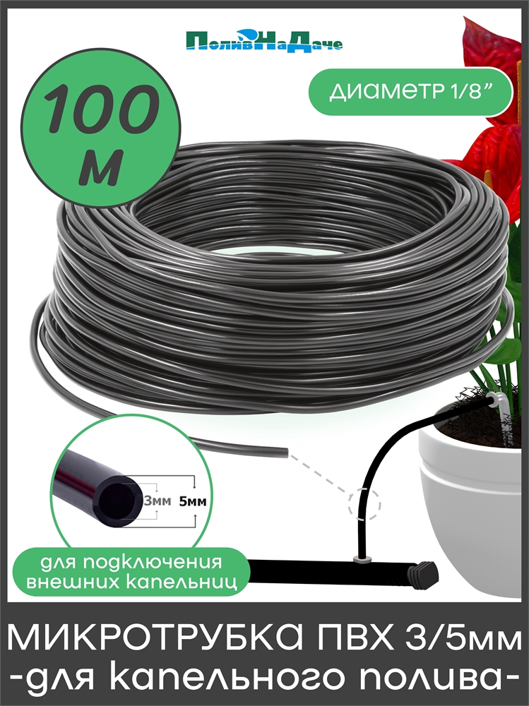 Мягкая трубка ПВХ 3/5 мм (3,0 bar) широко используется в системах капельного полива, необходима для соединения внешних капельниц с магистральной трубой или шлангом.