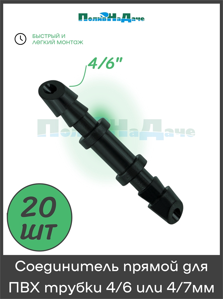 Соединитель прямой для ПВХ трубки 4/6 или 4/7мм (1/4") . Упаковка 20 шт.