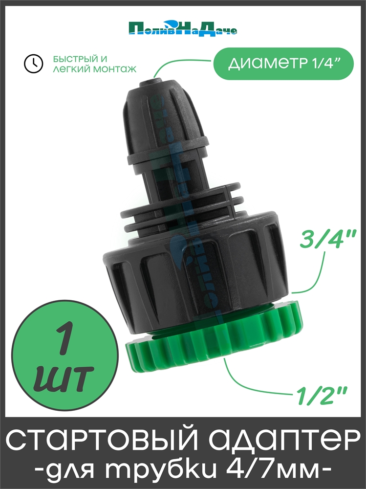 Стартовый адаптер для трубки ПВХ 4/6 или 4/7мм с поджимной гайкой. Подключение: 1/2" или 3/4".