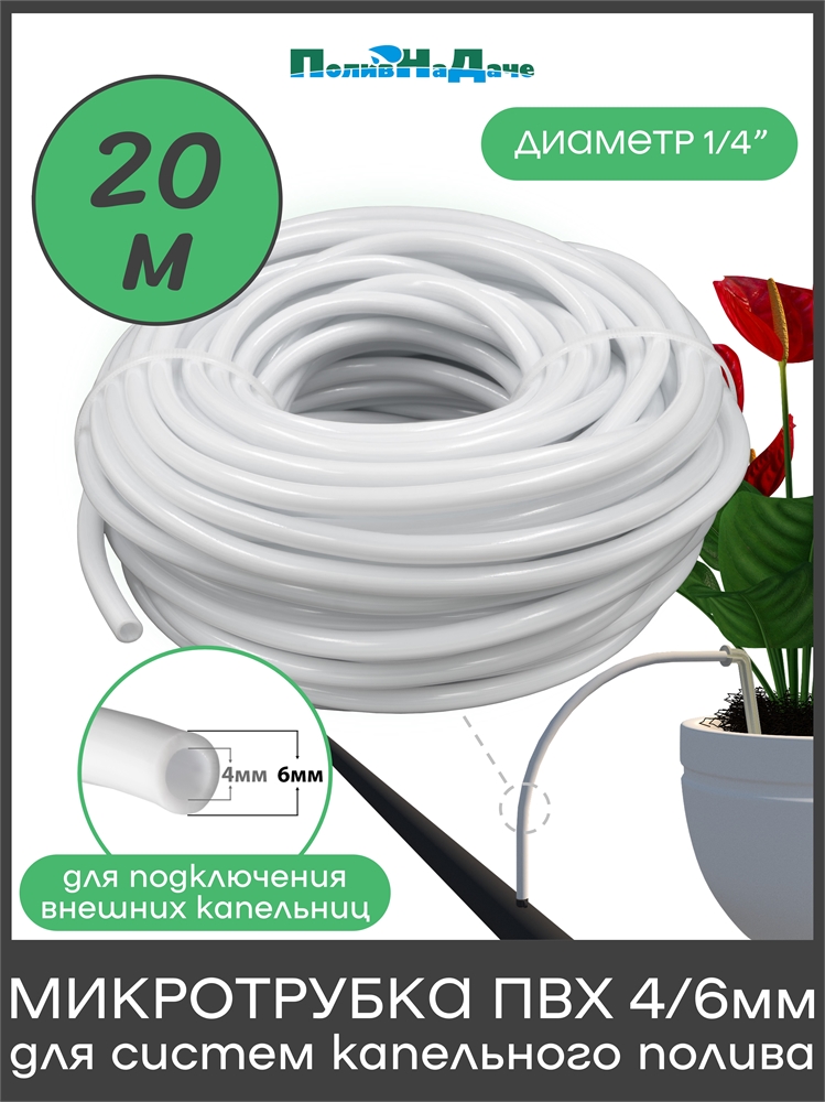 Мягкая трубка ПВХ 4/6 мм (4 bar) широко используется в системах капельного полива, необходима для соединения внешних капельниц с магистральной трубой или шлангом.