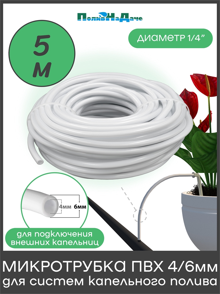 Мягкая трубка ПВХ 4/6 мм (4 bar) широко используется в системах капельного полива, необходима для соединения внешних капельниц с магистральной трубой или шлангом.